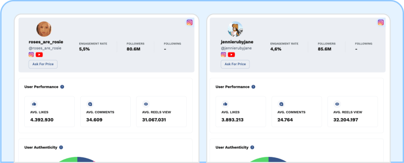 Dengan Analyser, kamu bisa mendapat insights mereka yang mendalam. Bandingkan hingga 10 influencers dari berbagai platform berdasarkan performa, authenticity, dan metrics lainnya. Jangan lupa gunakan Analyser untuk analisis insight yang detail!